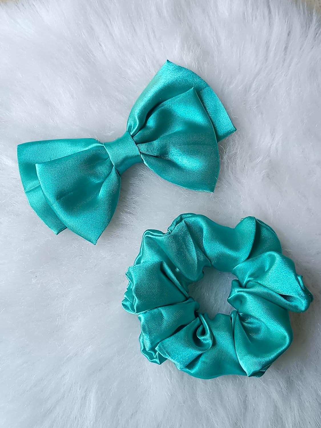 Add a fresh and vibrant touch to your hairstyle with this Turquoise Blue Bow Hair Clip and Scrunchies Combo Pack designed for girls and women. This stylish hair accessory set includes a charming fabric bow hair clip and soft scrunchies that help you create neat and trendy hairstyles effortlessly.