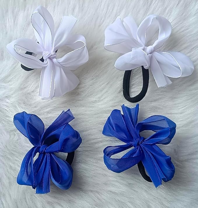 • Pack of 4 Hair Ties: Includes 2 white and 2 blue bow hair ties